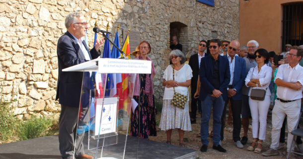 Dévoilement de la plaque commémorative par David Lisnard, maire de Cannes.