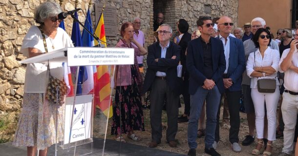 Intervention de Denyse Muller, présidente de l'Association des amis du Mémorial huguenot.