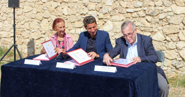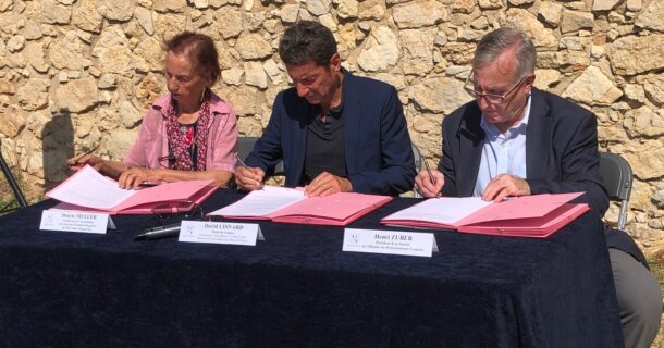 Signature de la convention entre l'Association des amis du Mémorial huguenot, la Société de l'histoire du protestantisme français et la ville de Cannes.
