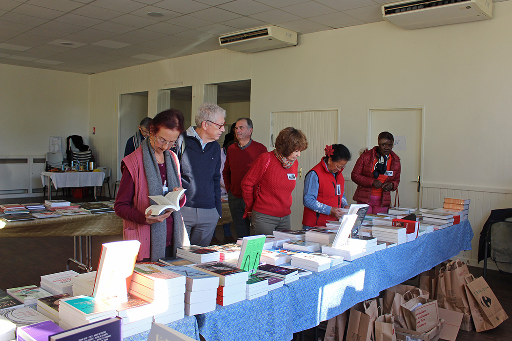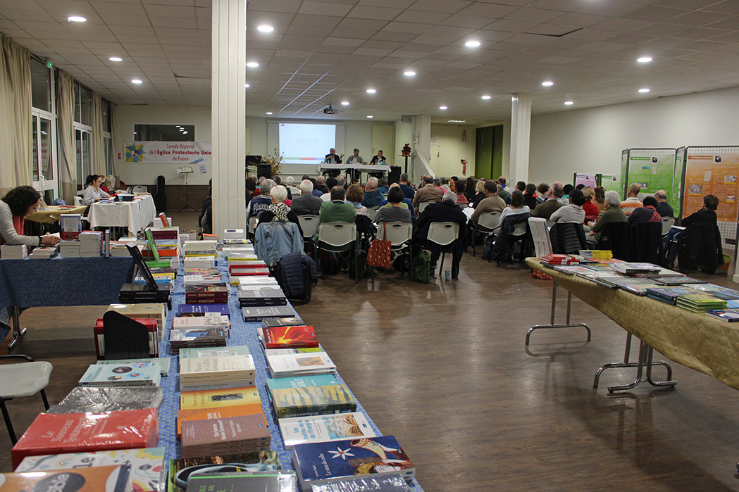 Le stand de livres du synode, organisé par une équipe dynamique, en lien avec les éditions « Olivétan » et la librairie « Le Grenier d’abondance » de Salon-de-Provence.