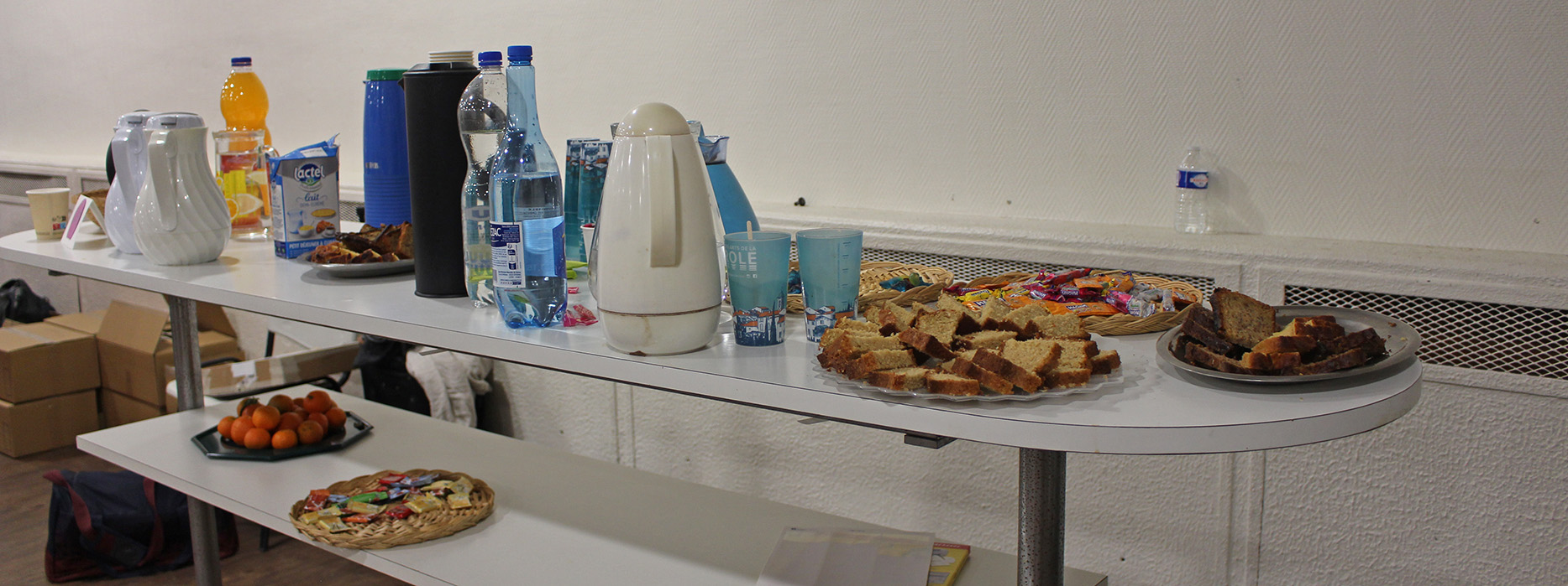 Où il est bon de bavarder autour d’un buffet riche en boissons, excellentes gourmandises-maisons, et clémentine de Corse ! Avec une équipe locale … Toujours présente et disponible