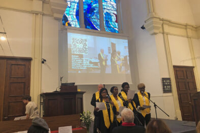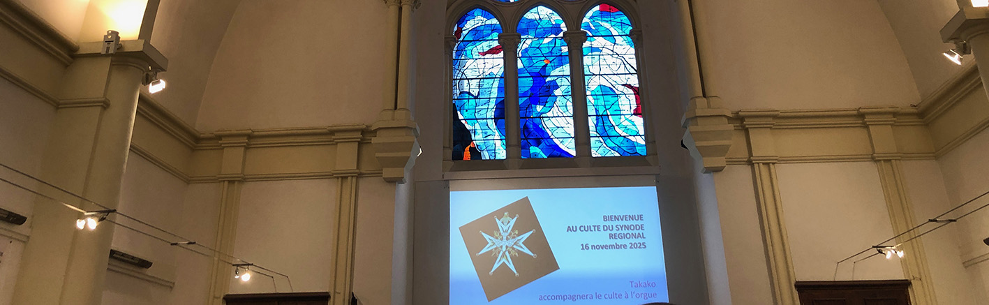 Dans le temple de Cannes, une assemblée de paroissiens et de synodaux …