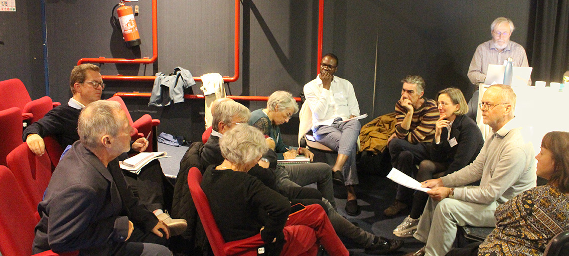 Présentation le vendredi soir d’une table ronde à trois voix – Travail en plénière le samedi matin – Travail de groupe en début d’après-midi suivi d’une plénière en fin d’après-midi