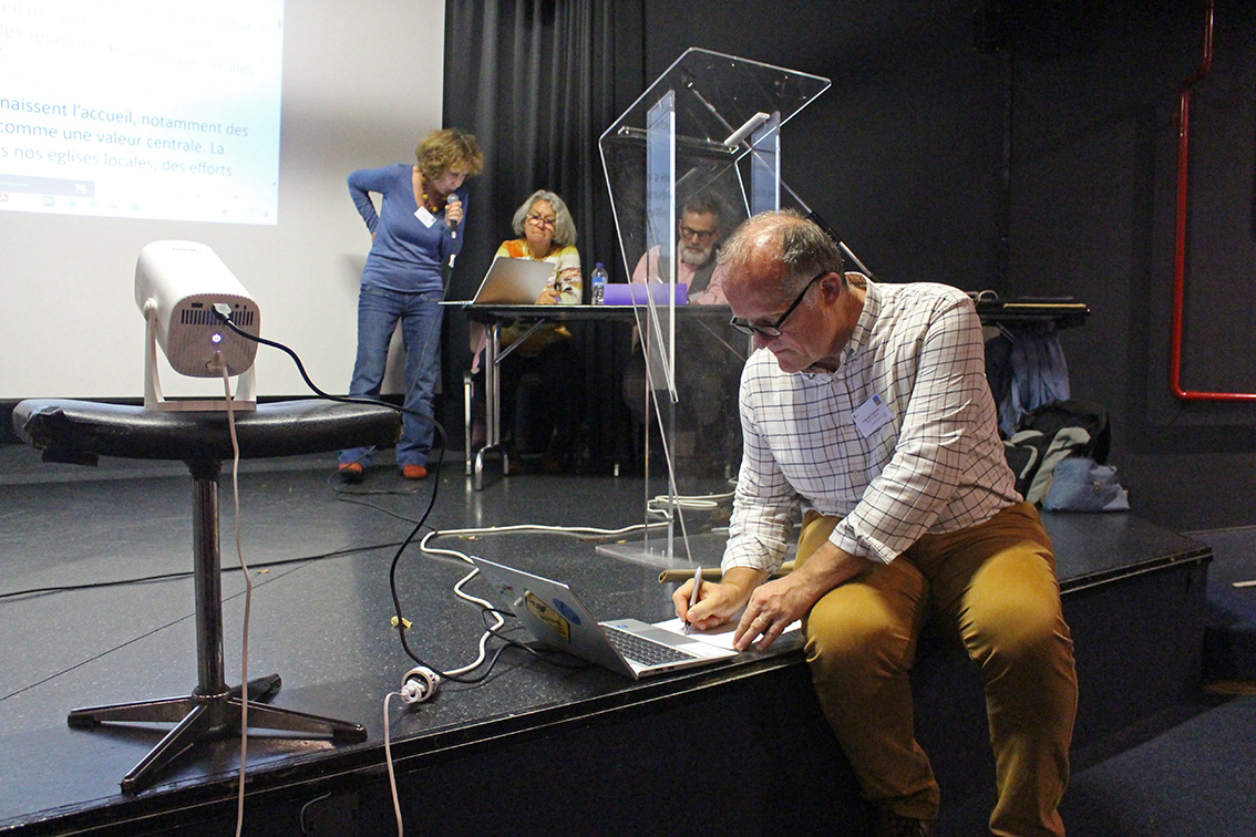 Il en résulte une dernière plénière où selon un fonctionnement synodal bien connu (!) un échange s’installe entre les rapporteurs et l’assemblée afin d’arriver à la composition d’un texte final soumis au vote le lendemain, et constituant ainsi l’avis du synode de la région Provence-Alpes-Corse-Côte d’Azur » sur le sujet synodal annuel de l’Eglise protestante unie de France »