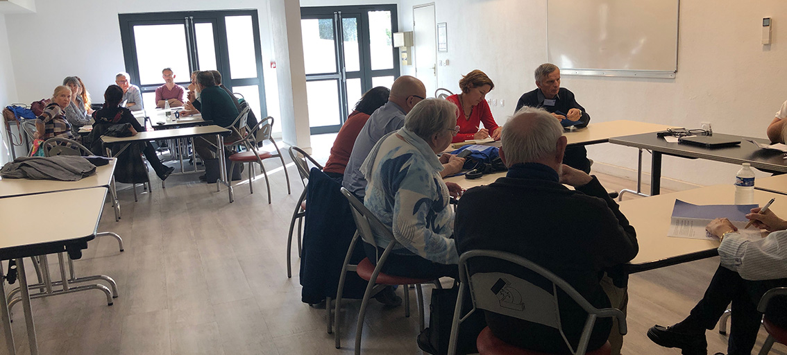 Samedi, après le repas de midi, commentaires et partages en groupes pour digérer le projet d’avis des rapporteurs sur le sujet synodal !