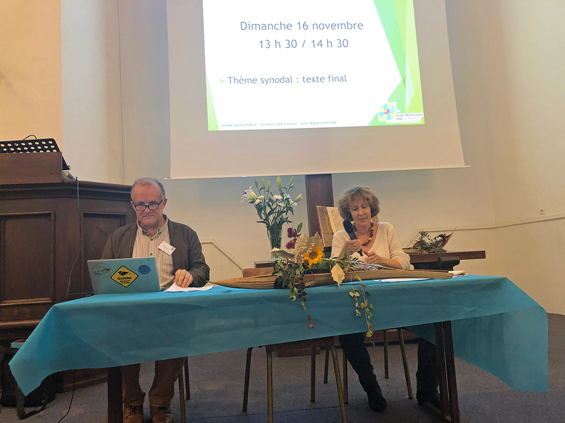Il en résulte une dernière plénière où selon un fonctionnement synodal bien connu (!) un échange s’installe entre les rapporteurs et l’assemblée afin d’arriver à la composition d’un texte final soumis au vote le lendemain, et constituant ainsi l’avis du synode de la région Provence-Alpes-Corse-Côte d’Azur » sur le sujet synodal annuel de l’Eglise protestante unie de France »